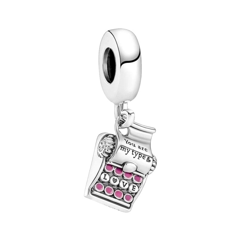 Grabado con la frase "Eres mi tipo", este encantador dije colgante está acabado a mano en plata de ley y decorado con esmalte rosa y dos circonitas cúbicas redondas de talla brillante. La palabra "LOVE" está escrita en el centro de las teclas de la máquina de escribir, porque a veces, la palabra "amor" es el centro de todo.
